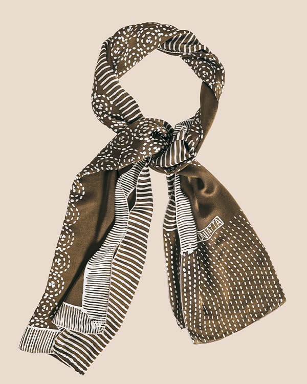 Exclusive Batik Scarves with Baju by OniattaPaying homage to the craft of batik, this exclusive collaboration with Baju by Oniatta depicts modern Batik Sashiko motifs on a series of scarves: honouring the diligent workmanship of