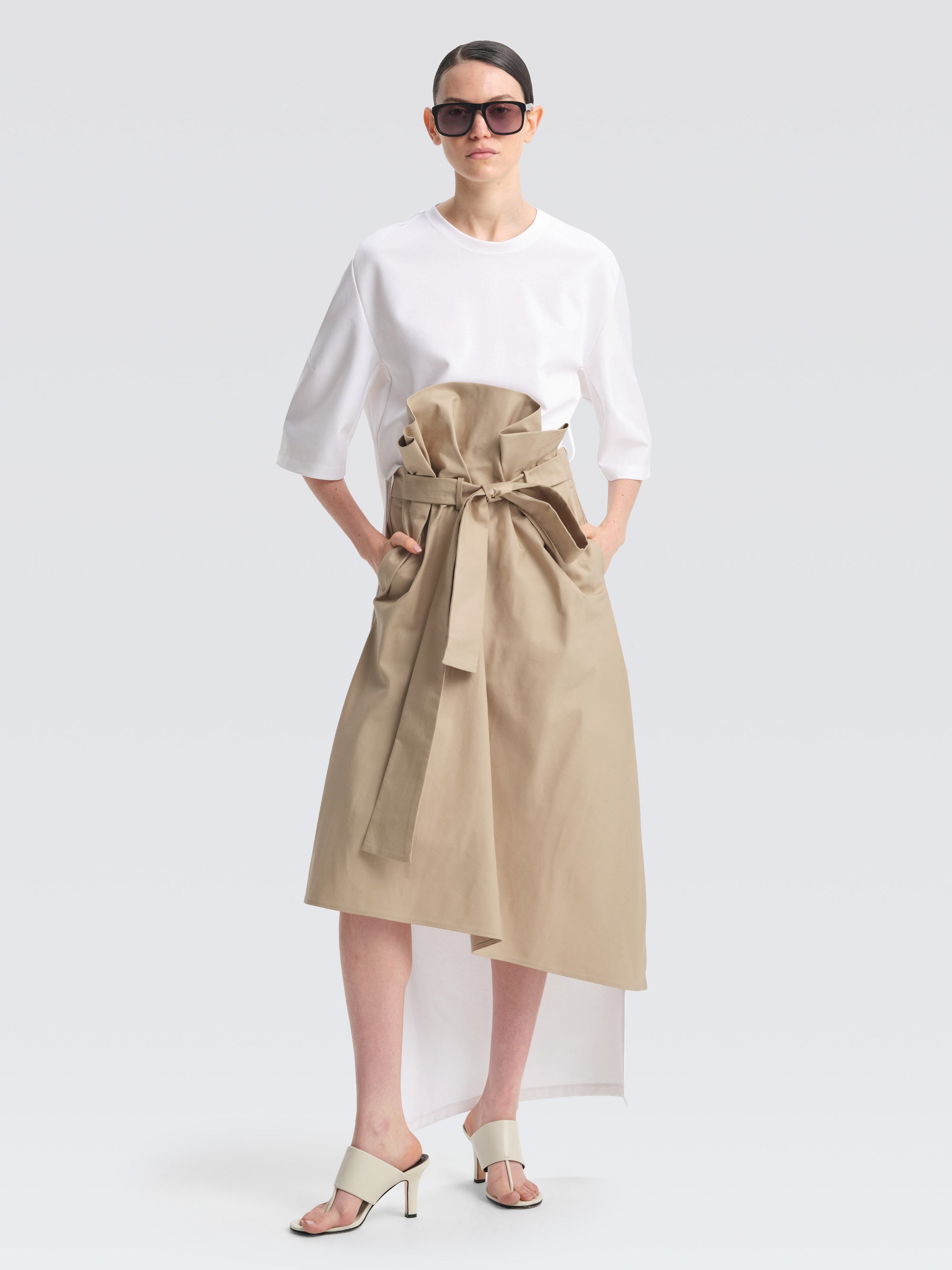 The TRAIN tee updates a classic with a modern edge. Made from supple mid-weight cotton jersey, it falls in a relaxed silhouette with dropped shoulders and elbow-length sleeves. An elongated hem grounds the shape, pairing seamlessly with both tailored shorts and sleek trousers.