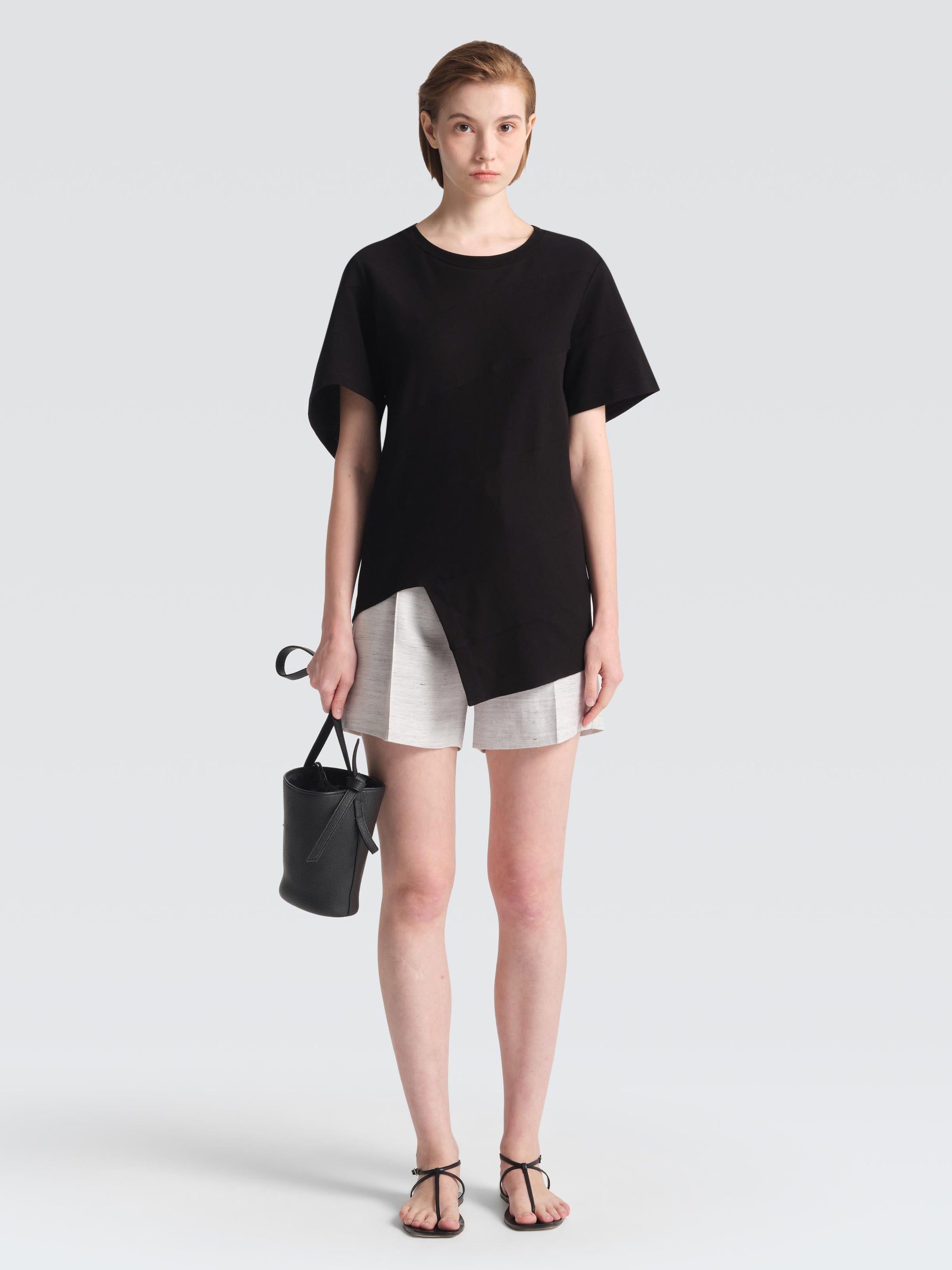 The GABRIEL tee reimagines the classic T-shirt through thoughtful construction. Draped from a single length of cotton piqué jersey, it’s shaped with precise cuts and draping for a quietly elevated finish. Wear it on repeat with denim or relaxed shorts.