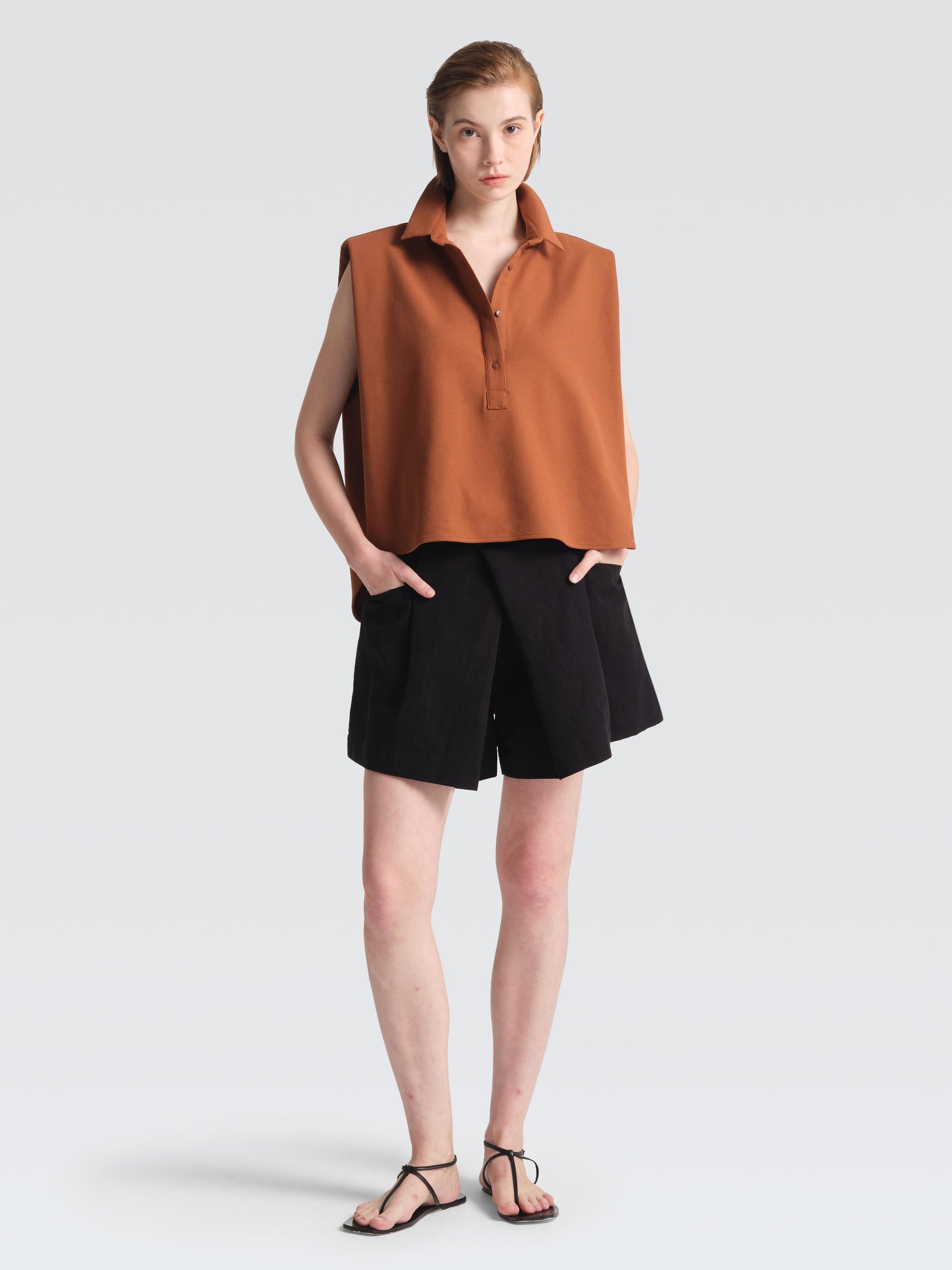 The POLO top reinterprets the classic polo in a minimal, contemporary way. Made from fine cotton piqué, it features extended side flanges and a softly graduated hemline. Style it with shorts or denim for an effortless, everyday look.