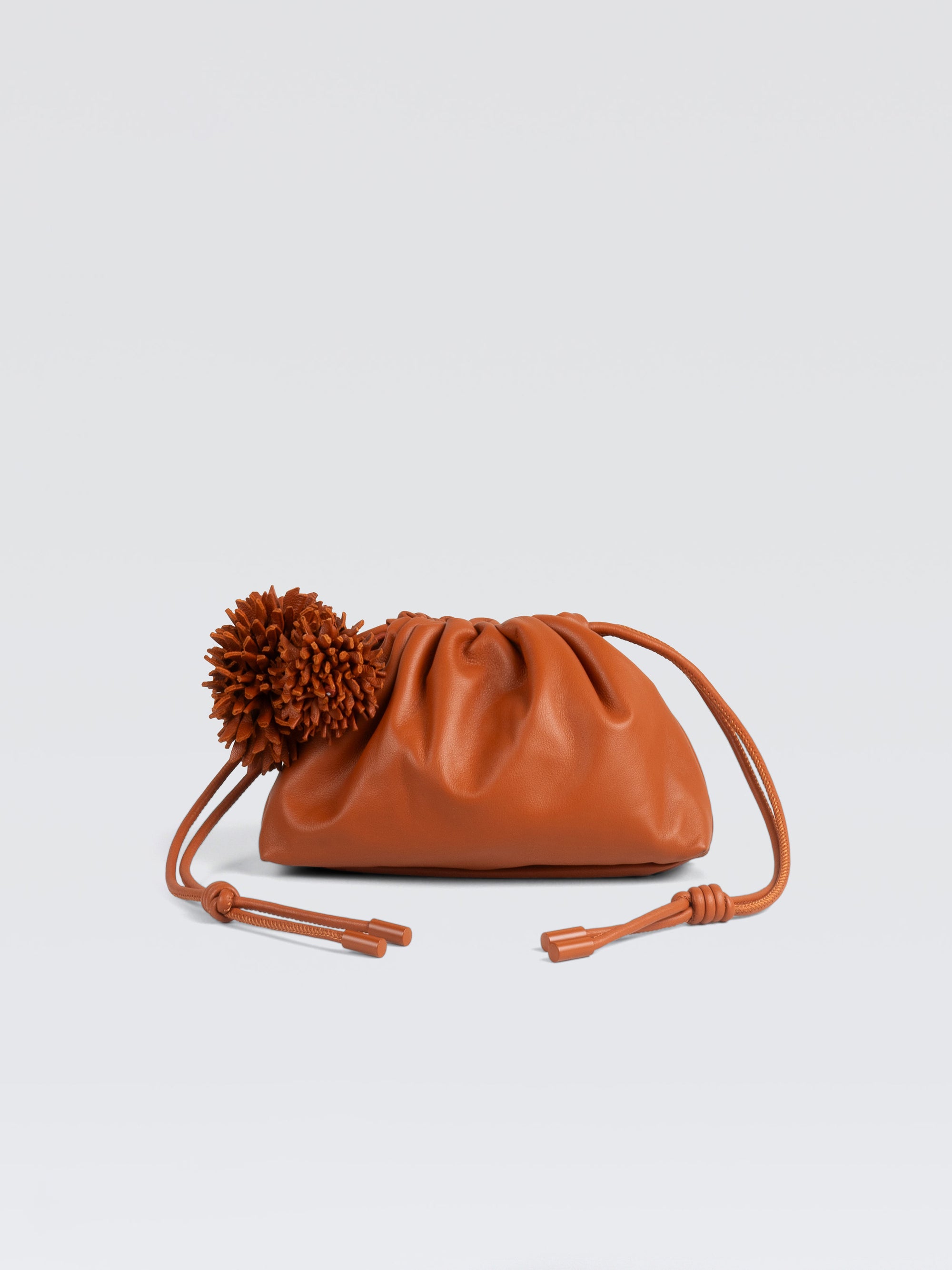 A limited holiday edition. Our holiday mini leather POUF bag pays homage to artisanal craft work and comes adorned with a delectable charm inspired by the botanical photography of Karl Blossfeldt. Fine crafting techniques and carefully considered details translate the wondrous forms, shapes and textures of our natural world onto leather. The charm is detachable and attaches to the POUF bag with a simple loop.