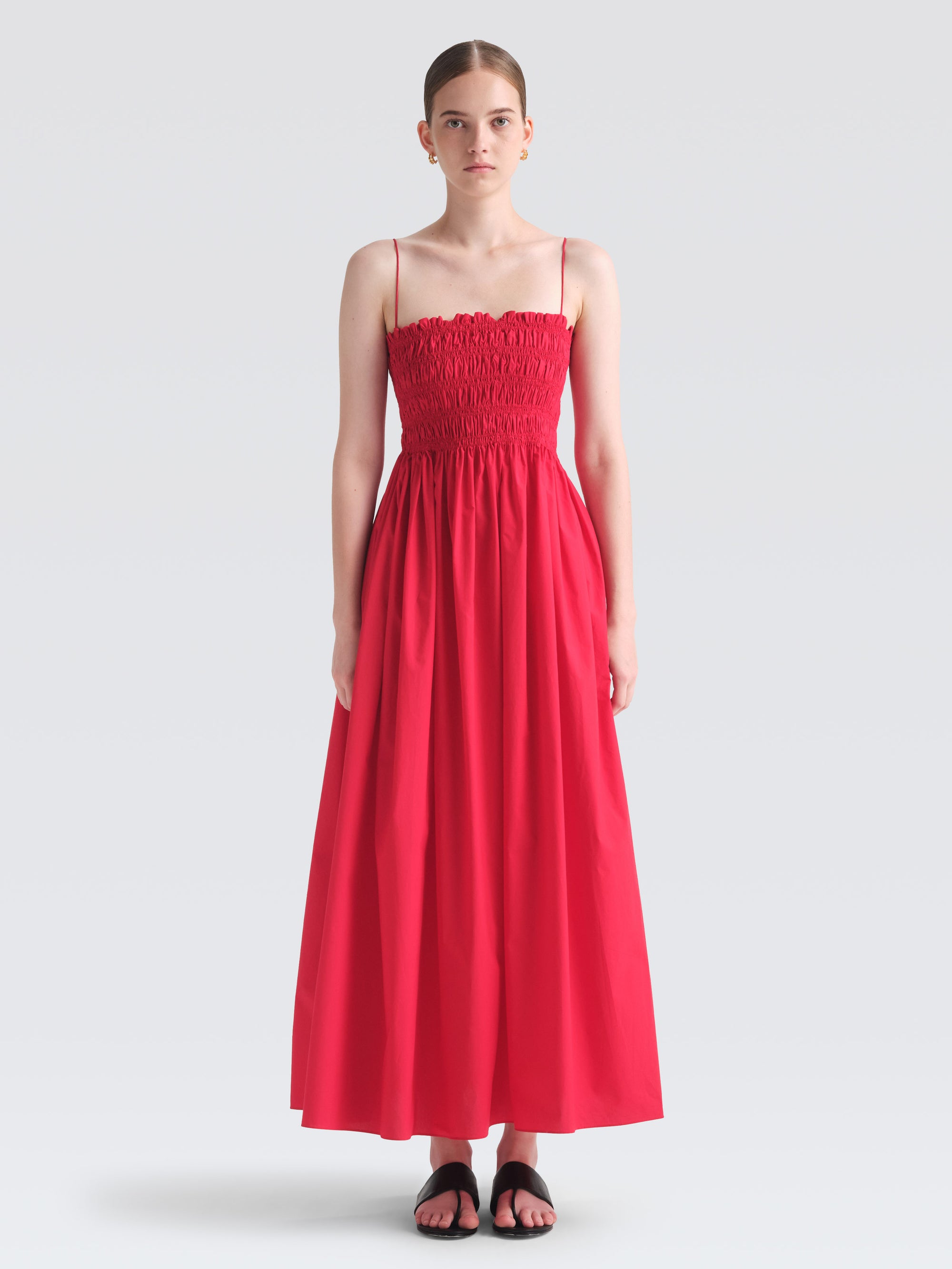 Perfect for city days or island getaways, the VIENNA dress is crafted from crisp paper poplin cotton. A shirred bodice ensures a close yet flexible fit, while the floaty skirt moves effortlessly. Adjustable shoestring straps can be tucked in for a chic strapless look.