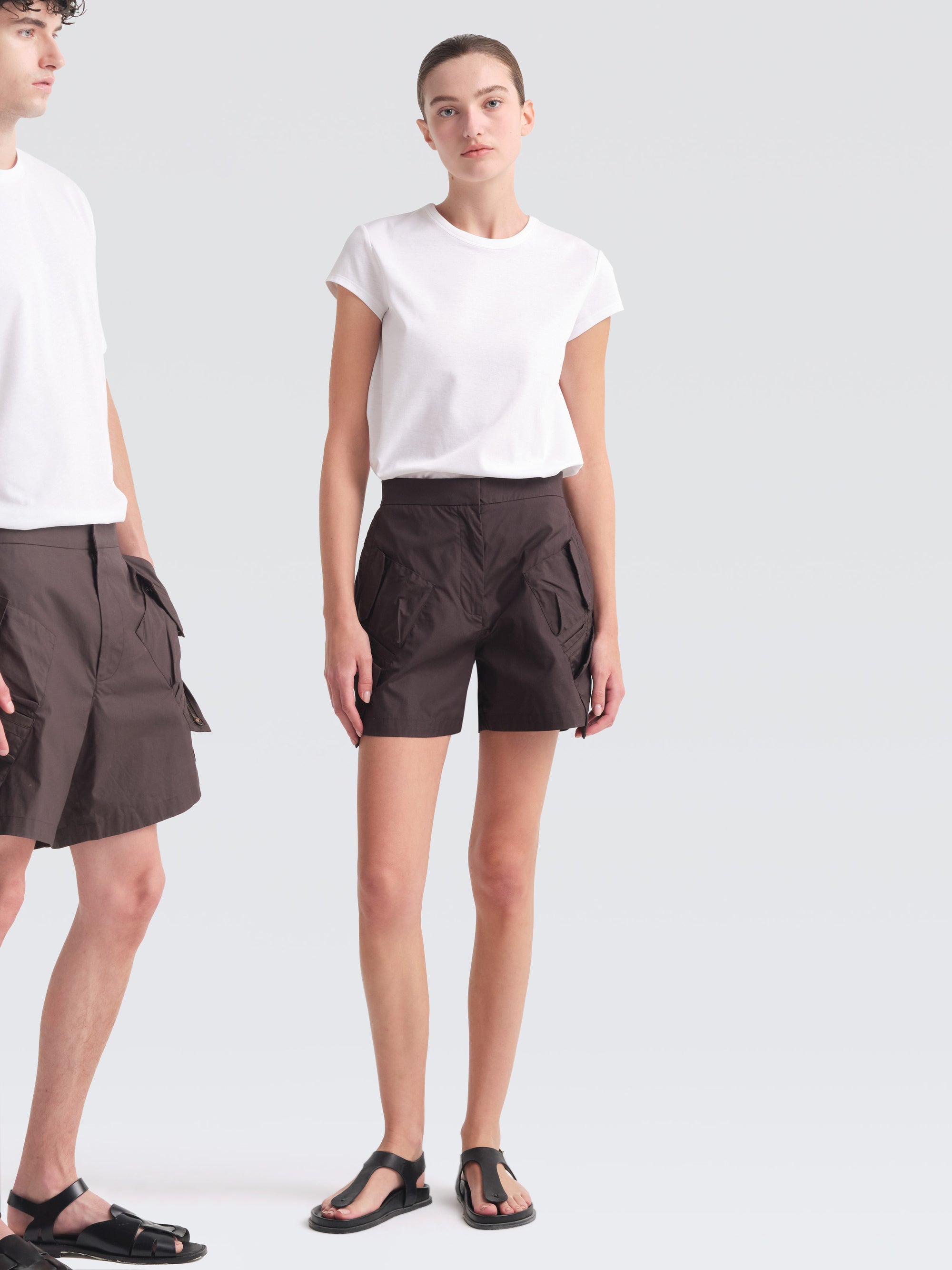 A modern utility essential, the WYOMING shorts are crafted from paper poplin and shaped for a relaxed fit. A partially elasticated waistband ensures comfort, while practical pockets lend a functional yet considered finish.