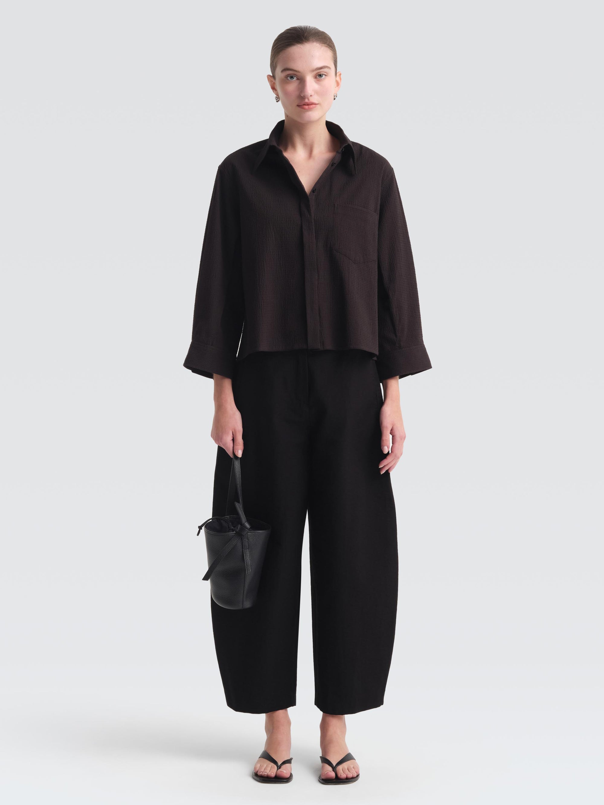 A modern update to a timeless shirt, the IDLER is made from lightweight organic cotton poplin and cut for a relaxed fit. Cropped sleeves with a subtle double vent and a stepped hemline add quiet distinction to this versatile essential.
