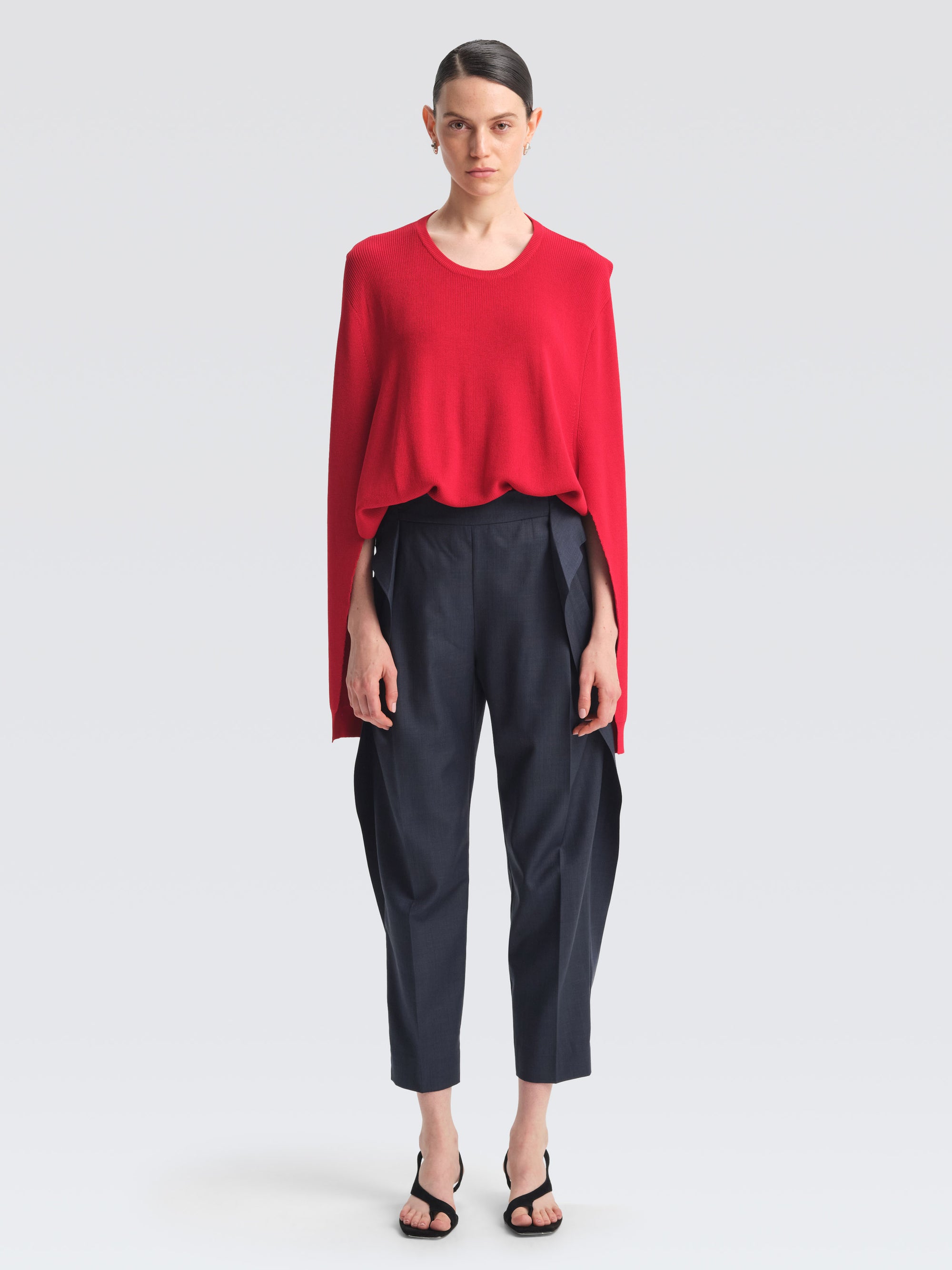 Tailored from tropical summer suiting, the RAQUEL trousers feature a distinctive silhouette with cascading flange details that come alive with movement. Designed with a sleek flat waistband and tapering legs that finish at a slightly cropped length, they make for a versatile, standout staple in any wardrobe.